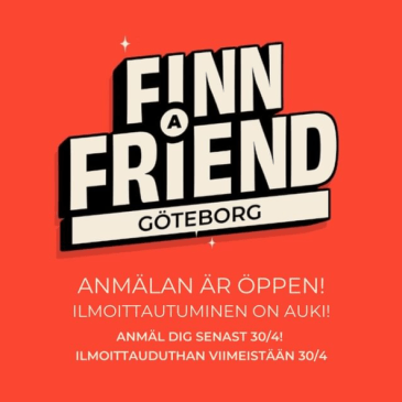 Lämpimästi tervetuloa GSN:n vuosikokoukseen 28.1.2025 klo 18. Seuraathan sivuamme Facebookissa ja Instagramissa, jossa tulemme ilmoittamaan kokouksen tarkan paikan ja esityslistan. Löydät Facebook sivumme nimellä ”Göteborgin suomalaiset nuoret” ja Instagramissa ”goteborginsuomalaisetnuoret” Varmt välkommen till GSNs årsmöte den 28 januari kl. 18. Följ gärna vår Facebooksida och Instagram, vi uppdaterar platsen för mötet och årsmötesprotokollet där. Du … More GSN vuosikokous 2025 / GSN årsmöte 2025
